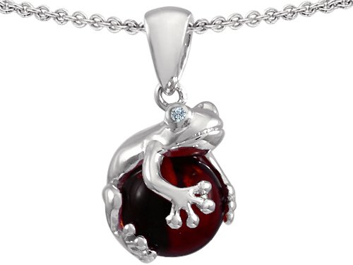 14K White Gold Plated 925 Sterling Silver Frog Pendant With Genuine Diamond Eyes and Simulated Garnet Ball crafted in 14k White Gold Plated Silver Dimensions: Width: 13.00 mm Length: 21.00 mm1 Stone 5.00 Carats Ball 10 x 10 mm Color: Red-Brown Clarity: Clean, 2 Stones 0.02 Carats Diamond Color: I Clarity: SI Free 18 inches chain included Finejewelers Style Number: 304690. ...Read more Details